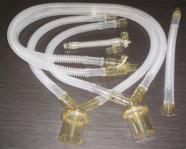 3、吸氣支和呼氣支管路上一定要連接集液瓶,收集呼吸機管路中的冷凝液。