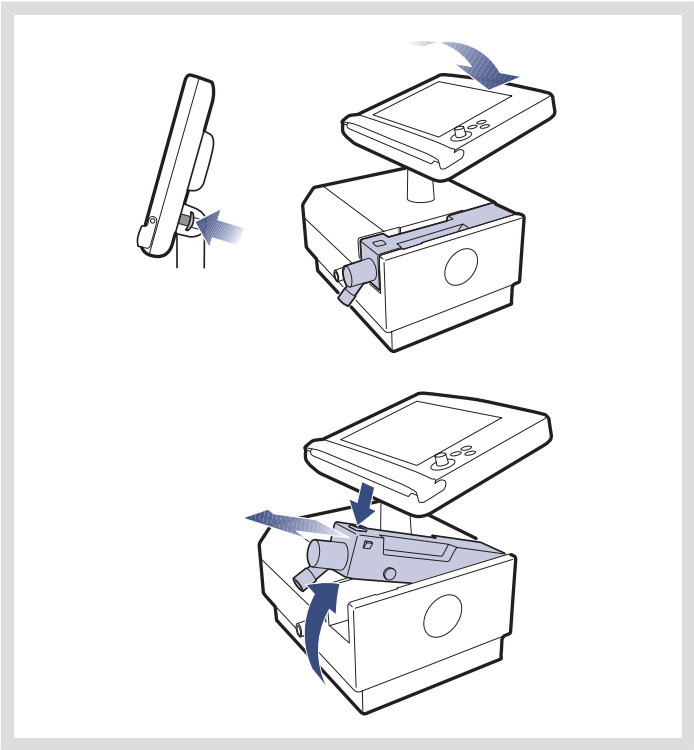 - 鉸接呼氣封閉盒并向下按壓,使其卡入鎖定位置。