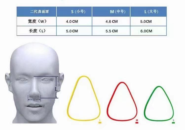 選擇鼻面罩,主要應(yīng)對鼻翼兩側(cè)、鼻梁區(qū)域、上嘴唇和鼻尖中間進(jìn)行定標(biāo)測量,佩戴時注意區(qū)域,如鼻中隔偏曲、鼻梁斷裂等情況。