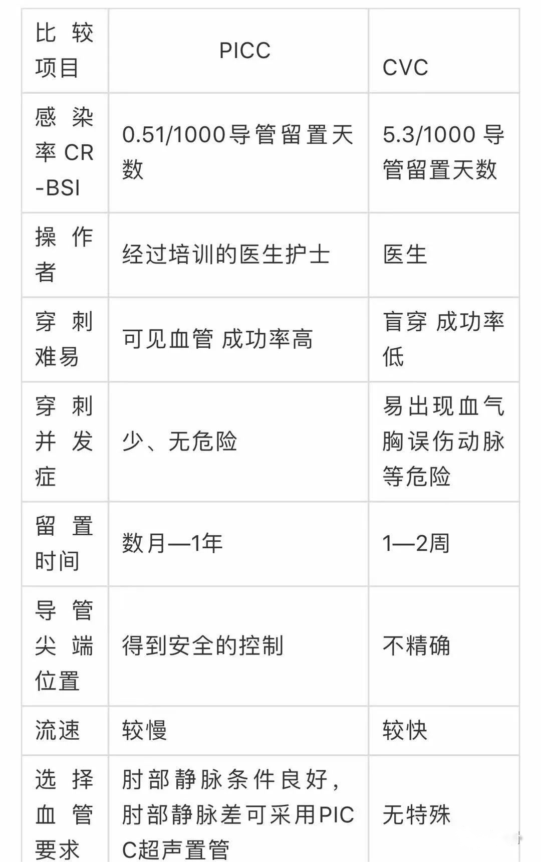 PICC 與 CVC 導(dǎo)管對(duì)比